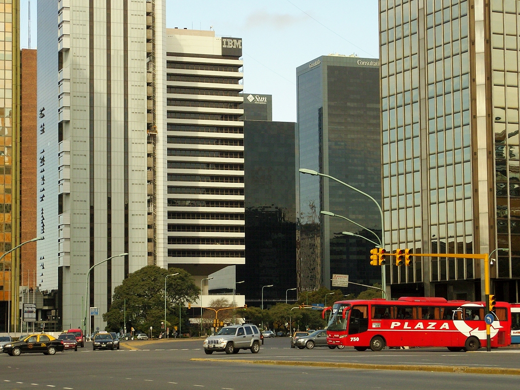 Centre d'affaires récent de Buenso-Aires, près du Centro, le quartier des pouvoirs politiques et économiques du XIXè . L'organisation urbaine reste encore monocentrique, avec un hypercentre qui s'étale vers les berges du Rio de la Plata. On imagine les migrations pendulaires de cette métropole hypertrophiée ( Le Grand Buenos Aires fait plus de 13 5 millions d'habitants, un rapport de 1/10 avec Cordoba, seconde ville du pays, près d'un tiers de la population totale) dont le métro séculaire est trop peu étendu et aux couloirs trop étroits. Le trafic des bus privés est réputé pour ses désagréments.