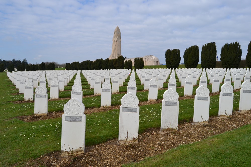 La guerre de 14 ayant impliqué des puissances coloniales, elle eut pour effet, outre le fait de déclencher des combats entre colonies allemandes et colonies alliées, d'entrainer un recours massif aux troupes coloniales. C'est ainsi que de nombreux Africains tombèrent au champ d'honneur à Verdun. Situé à l'Est du cimetière de Douaumont le carré musulman est maintenant complété par un mémorial construit en 2006. Ils rappellent le rôle des troupes coloniales dans cette guerre et notamment dans la reconquête du fort de Douaumont.