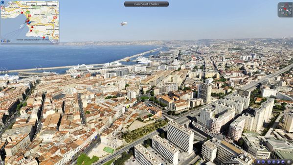 L'incrustation du plan fourni par google est utile pour un premier repérage mais le plan de permet pas d'identifier les lieux les plus emblématiques de Marseille. On préféra donc utiliser la carte topographique disponible dans édugéo qui permet de repérer la gare St Charles, Nd de la Garde etc...