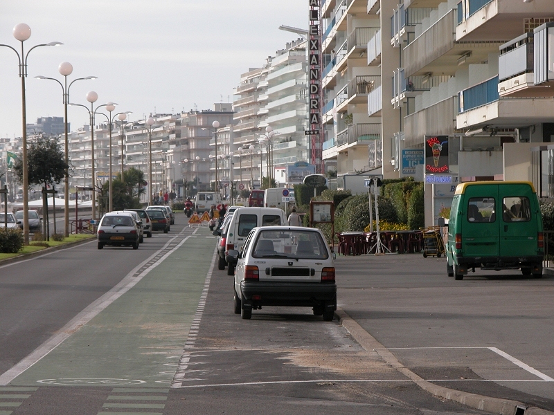 Bord de mer avec avenue routière, le " remblai ", paysage urbain de bord de mer des stations des années 50 à 85, avant la Loi Littoral.