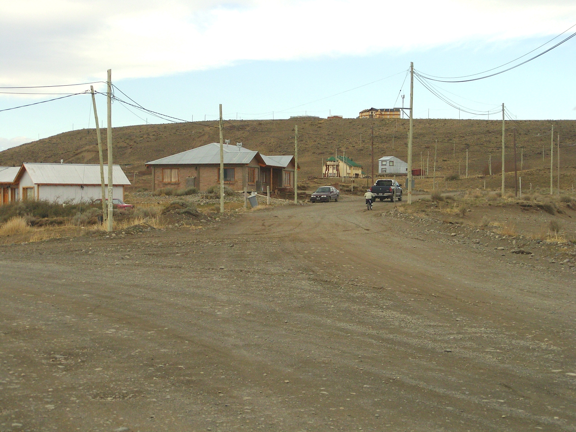 El Calafate, ville pionnière de la Patagonie méridionale. Ville de Kirchner, l'ancien président de la République qui y lança un plan ambitieux de valorisation du potentiel touristique (aéroport international, avec des vols directs possible avec Paris, parc hôtelier surdimensionné) Ici les marges de la ville dont on perçoit le maillage en quadra. C'est le Far-sud argentin à proximité des lacs glaciaires de toute beauté et des massifs célèbres du Fitz-Roy.