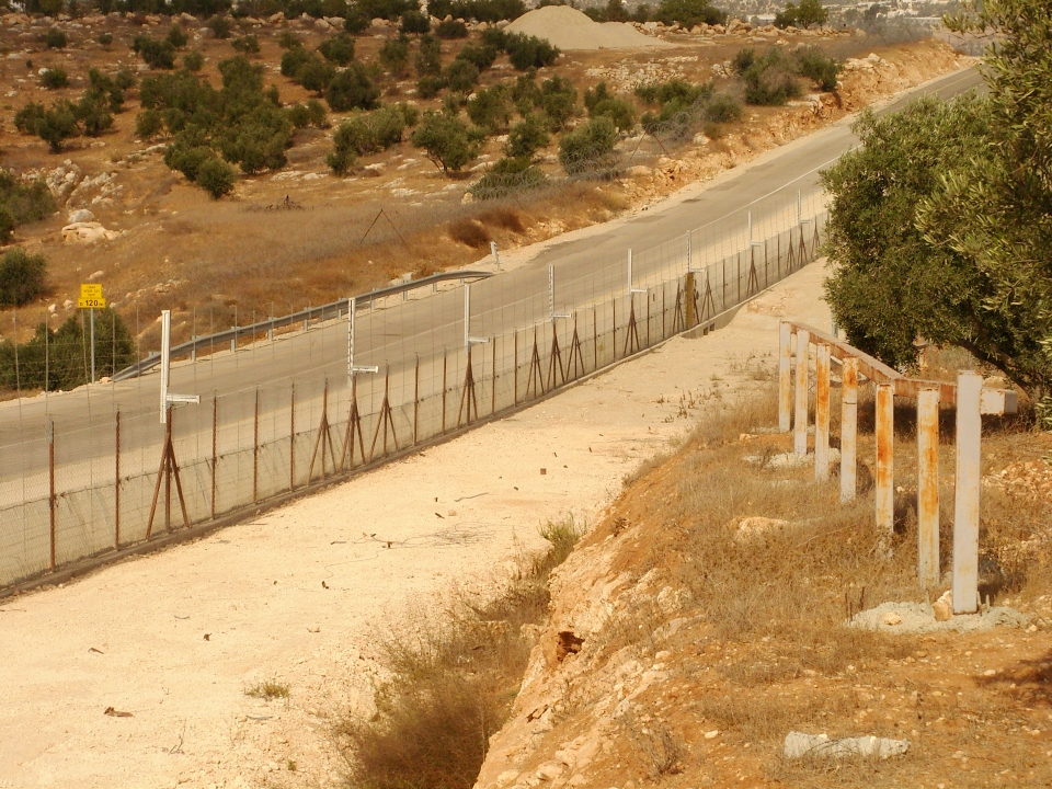 Barrière de barbelés entre Israël et la Cisjordanie dans une région agricole très peu peuplée. Des caméras reliées à des postes de surveillance permettent d'analyser toute situation.