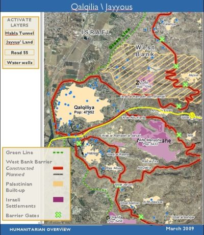 Exemple de tracé au nord-ouest de la Cisjordanie : Qalqilya