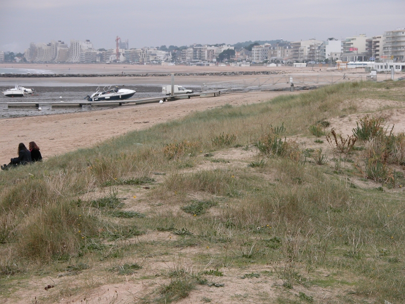 Le cordon dunaire résiduel et l'amorce de la grande plage à basse-mer, vue côté Pornichet.