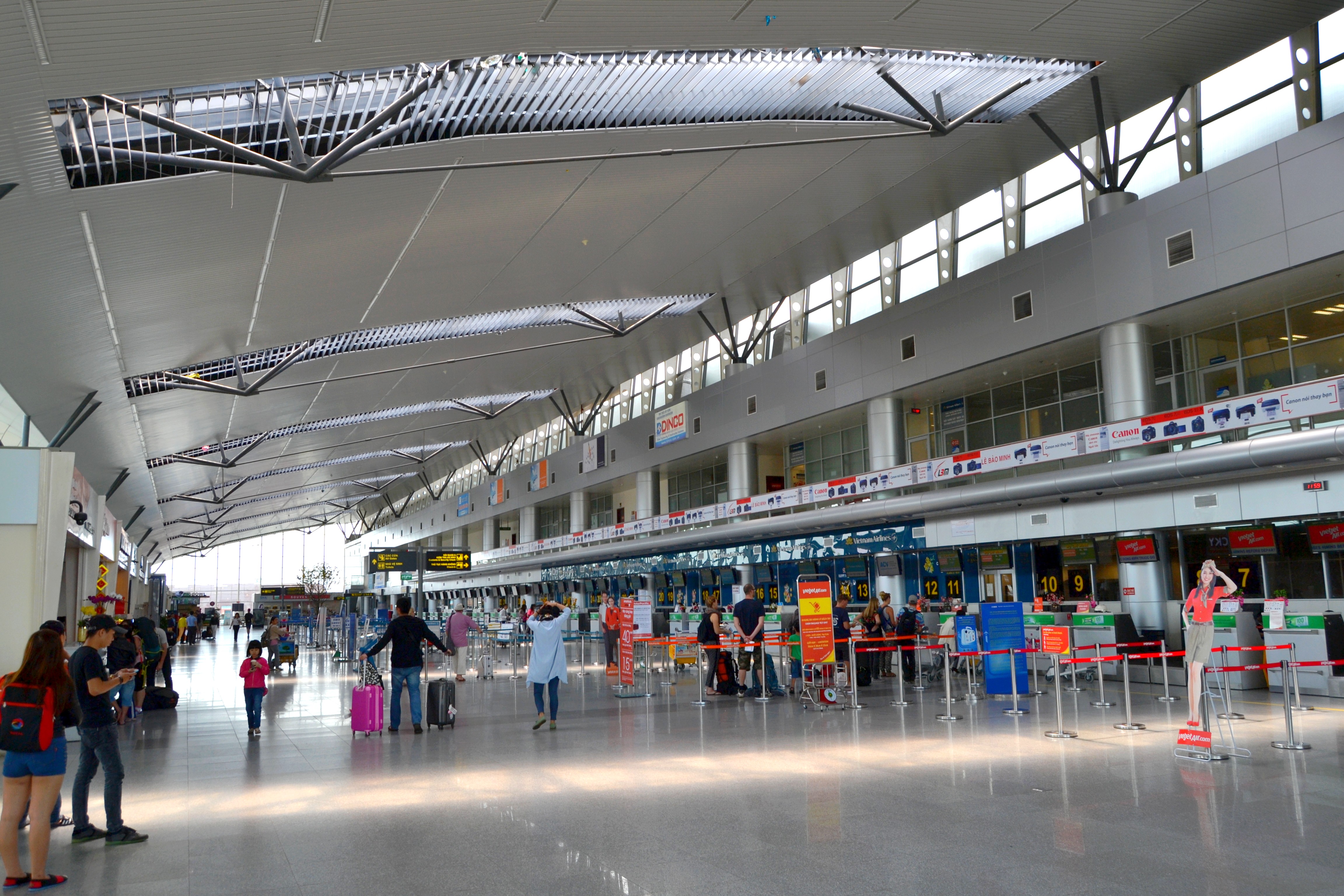 Les aéroports sont le premier contact des visiteurs avec le pays et ce qui frappe, c'est leur modernité. Que ce soit l'aéroport de Hanöi, celui de Hué, celui de Da Nang ici, ou encore celui de Ho Chi Minh Ville. Ils sont tous d'une grande modernité et très bien reliés au centre ville par des routes modernes. Ils sont typiques de l'image que ce pays veut donner aujourd'hui.