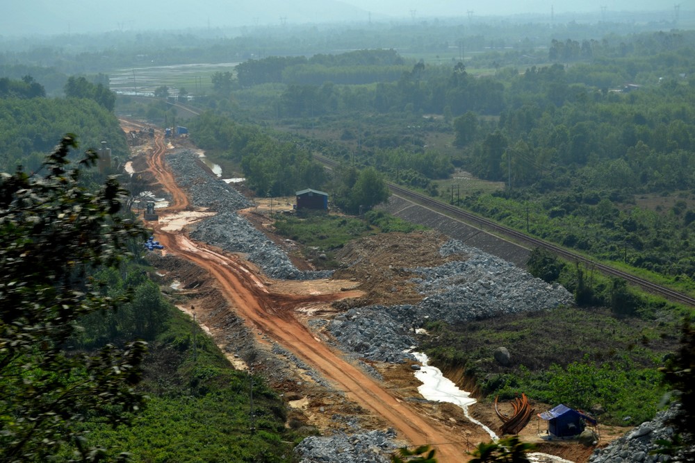 Le pays réalise un gros effort de modernisation de ses infrastructures. Ici entre Hué et Da Nang la voie ferrée est en cours de doublement.