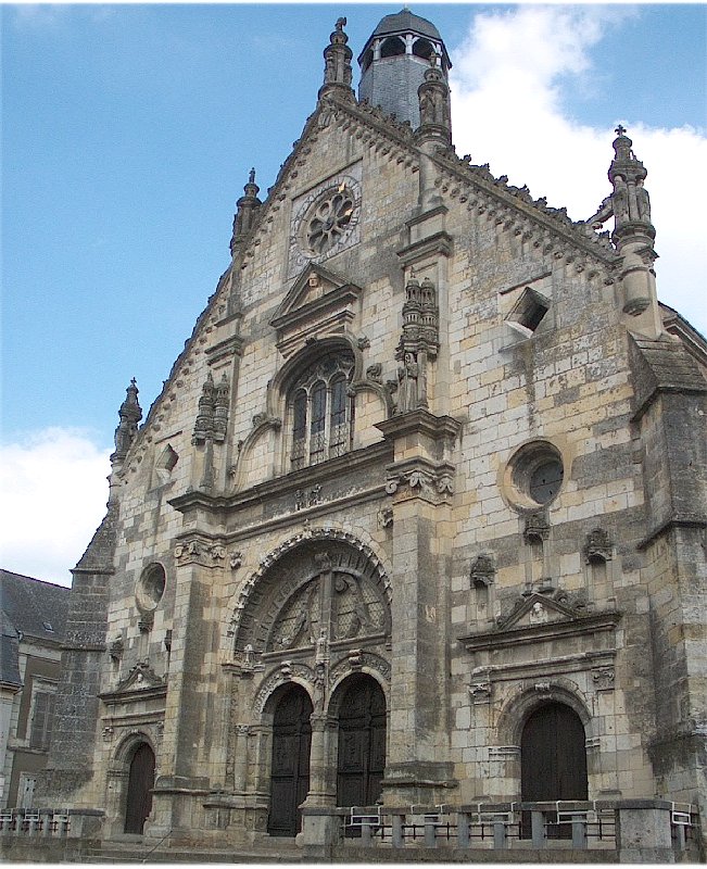 L'église de Saint Calais est un édifice qui a été remanié à cause des destructions de la guerre de cent ans et des guerres de religion. La façade occidentale de l'actuelle église Notre Dame date du milieu du seizième siècle et les sculptures sont dues à Guillaume le Houx.