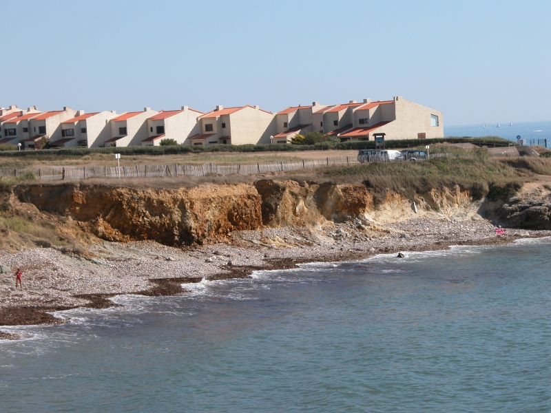 Baie de Cayola. La coulée urbaine s'étale sur tout le littoral des Sables d'Olonne à la Tranche-sur-Mer. Les lotissements ou villas remarquablement cachées dans les forêts de pins maritimes ou de chênes verts achèvent le " bétonnage " d'un littoral attirant pour ses criques et sa verdure.