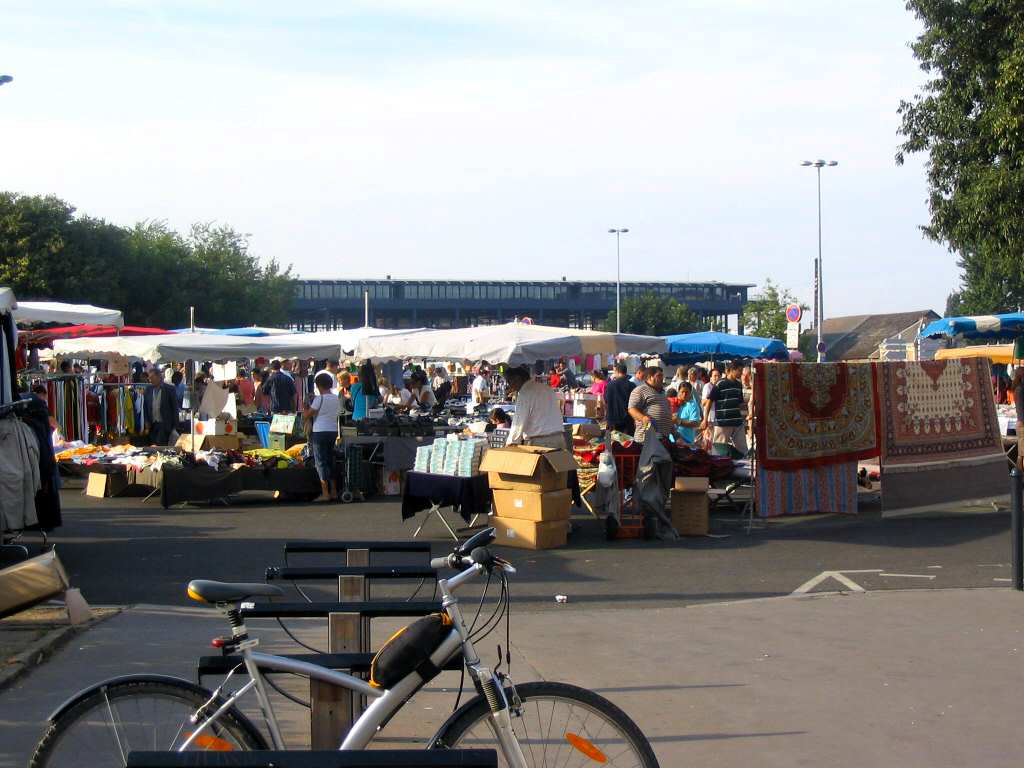 Le marché de la Petite-Hollande, sur un des terres-pleins gagnés par le comblement d'un bras de la Loire.