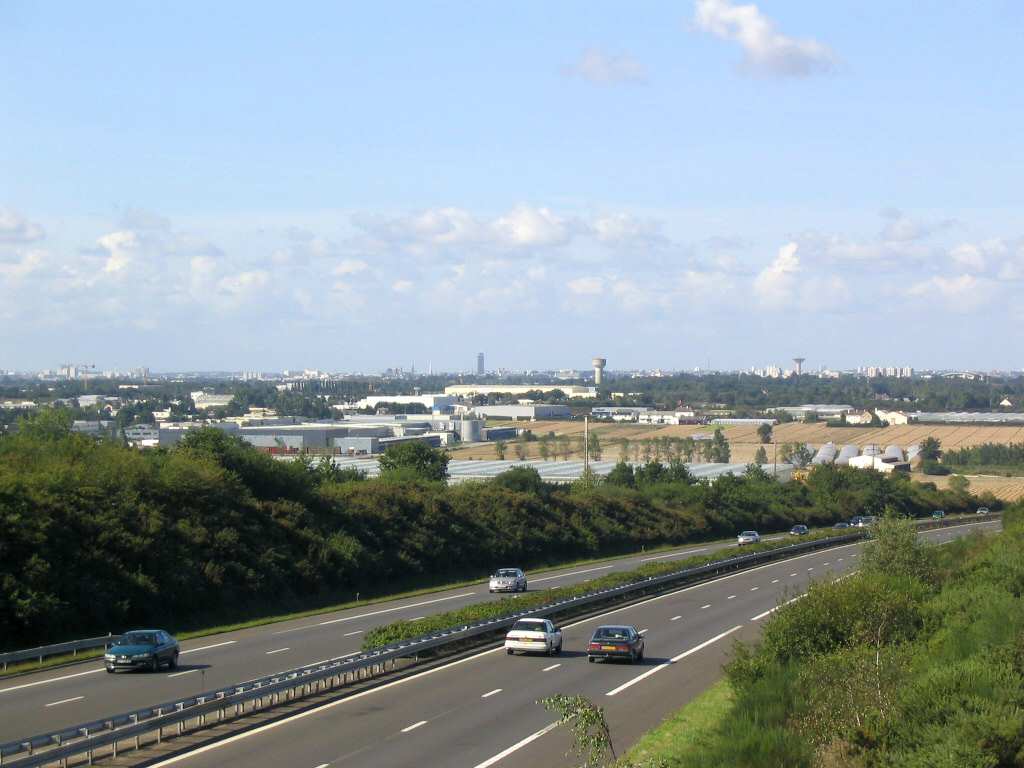 L'espace agricole grignoté par le front urbain qui progresse le long de l'A11 (Carquefou).