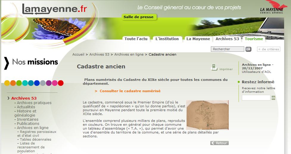 Le service des archives départementales propose des cartes anciennes (cadastre napoléonien).