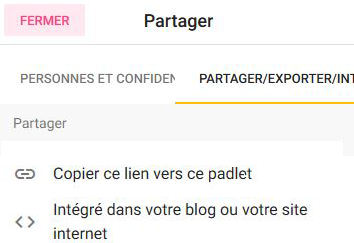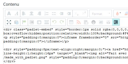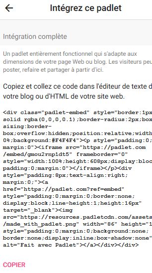 Sur Padlet, le code d'intégration (< >) du mur est copié....