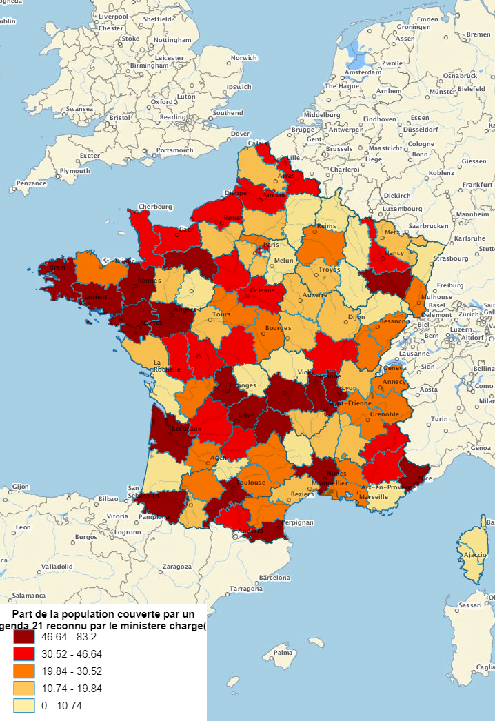 Un agenda 21 local est porté par des communes ou leurs groupements, des pays ou des PNR, plus proches du citoyen. On exclut ici les agendas 21 portés par des départements ou des régions.