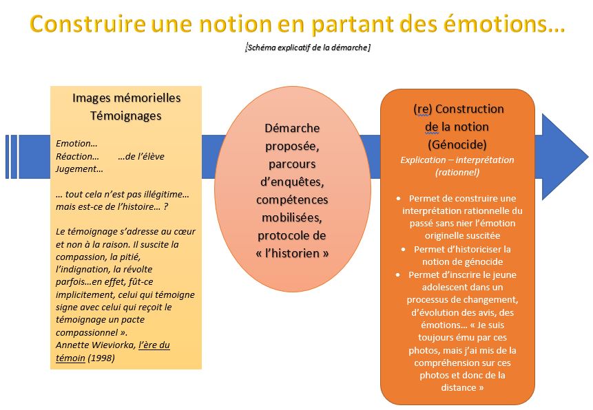 Face à la puissance et la violence dégagées par certaines images emblématiques des génocides du XXe siècle, tous les élèves peuvent être submergés par l'émotion. C'est par une analyse critique et historique, permettant une mise à distance, qu'ils peuvent dépasser et mettre à distance leur émotion et construire des notions.