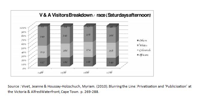 En effet, les anciennes plages « blanches » continuent d’être fréquentées essentiellement par les blancs et les touristes. Ce sont les plages les plus centrales et les mieux mises en valeur : Camps Bay, Clifton. A l’inverse, les plages les plus éloignées et les moins bien reliées sont associées à la violence et à la criminalité et demeurent des espaces fréquentés seulement par la population locale noire et métisse : cas des plages de Monwasibi et Strandfontein.