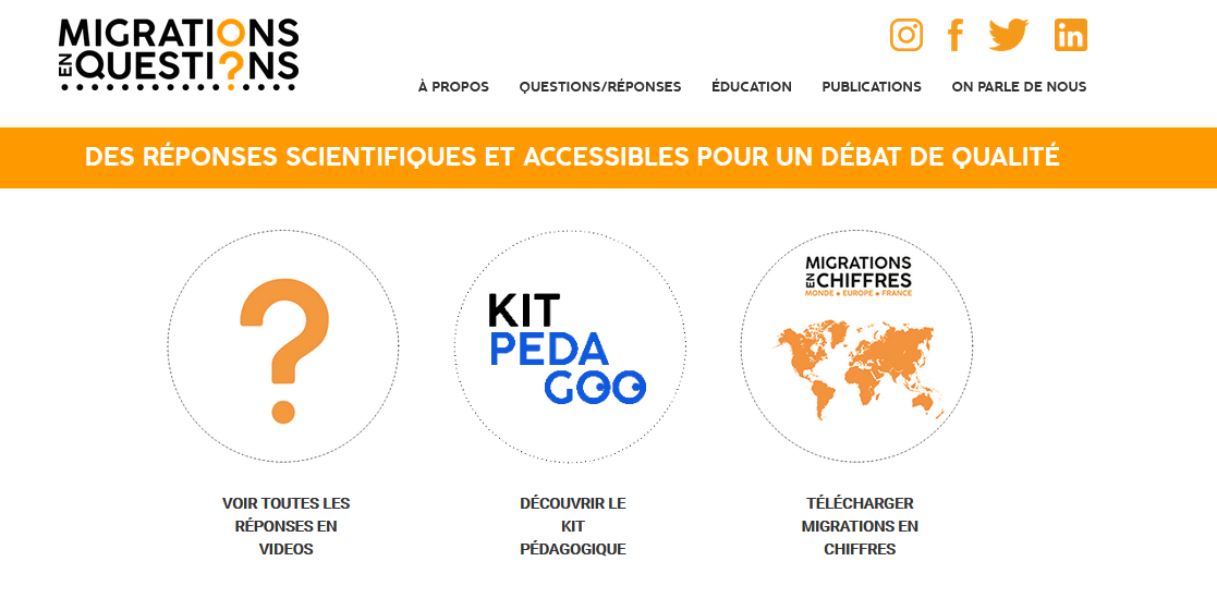 Un Kit pédagogique (« Kit pedagoo ») auquel des professeurs de l’académie de Nantes ont participé. Ce kit pédagogique sera officiellement lancé le 18 décembre prochain. Il est déjà accessible sur le site : https://www.migrationsenquestions.fr/