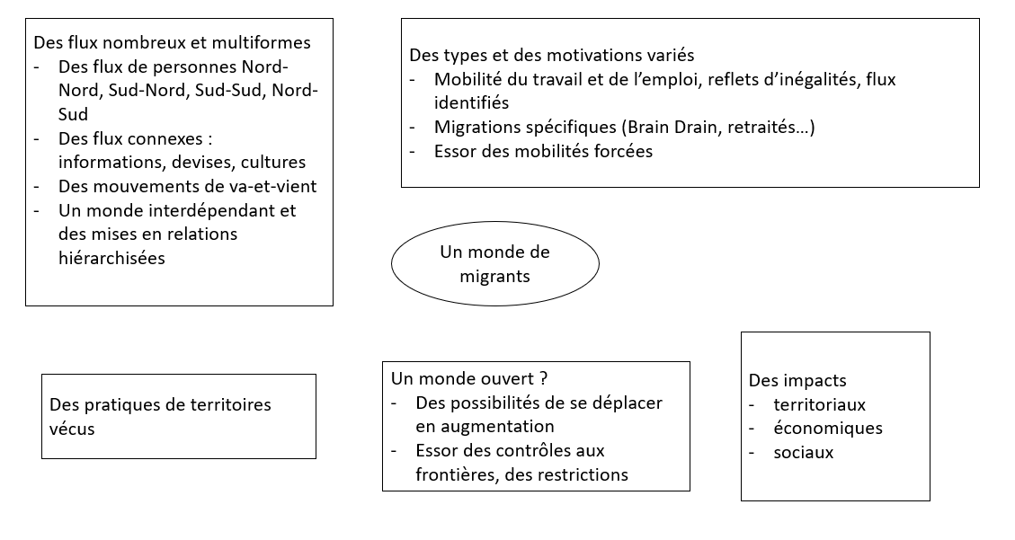 Une proposition de séquence avec une démarche inductive et centrée sur la réalisation de croquis afin de montrer la diversité et la complexité des flux migratoires actuels, les acteurs impliqués, les conséquences territoriales et socio-économiques.