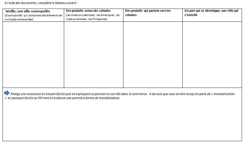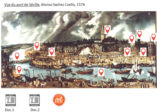 Etudier une vue du port de Séville peinte par Alonso Sanchez Coello en 1576 dans l'objectif de comprendre les transformations liées aux Grandes Découvertes et à l'essor de la mise en exploitation du nouveau monde.