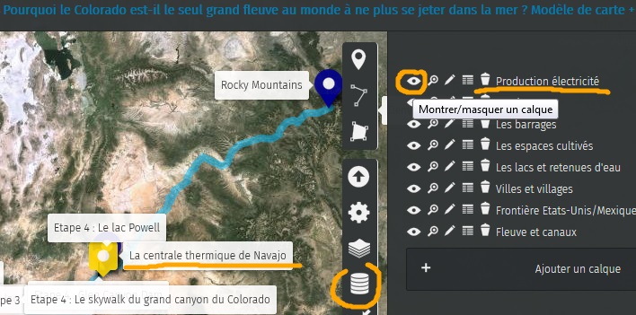 A noter : l'interface d'uMap permet l'utilisation de calques dans lesquels s'intègrent les repères et que l'on peut faire apparaitre en temps voulu.