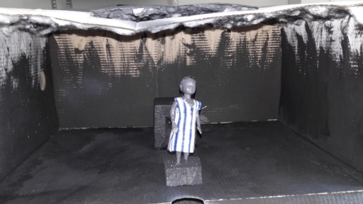 En dessous, nous avons appliqué du coton pour représenter la neige. Quand nous sommes arrivés, il neigeait. Nous avons immédiatement été plongés dans une atmosphère froide, un froid qui intensifiait les terribles conditions de vie dans lesquelles vivaient les déportés. D’autre part, la neige suggère une certaine beauté qui contraste avec la réalité atroce.