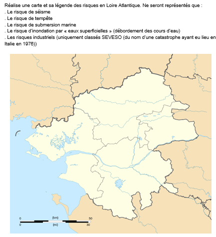 2 – la seconde séance (en salle informatique) consiste à poser la question des risques à l’échelle départementale et à envisager les acteurs de prévention. Les élèves construisent une carte synthétique des risques en Loire Atlantique.