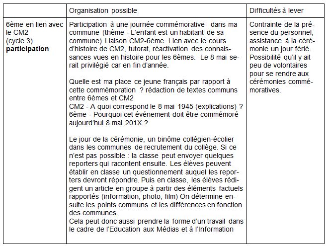 Cette progression peut faire partie du projet d'établissement qui doit désormais détailler les modalités de la participation active des élèves aux journée et semaines spécifiques ainsi qu'aux commémorations patriotiques.