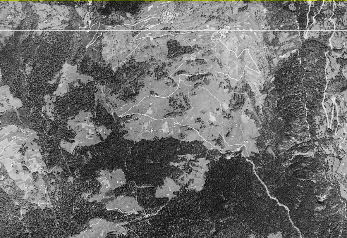 Nous disposons d'une photographie aérienne de 1956 qui montre la vocation pastorale de ce territoire mais aussi d'une carte ancienne de 1974.