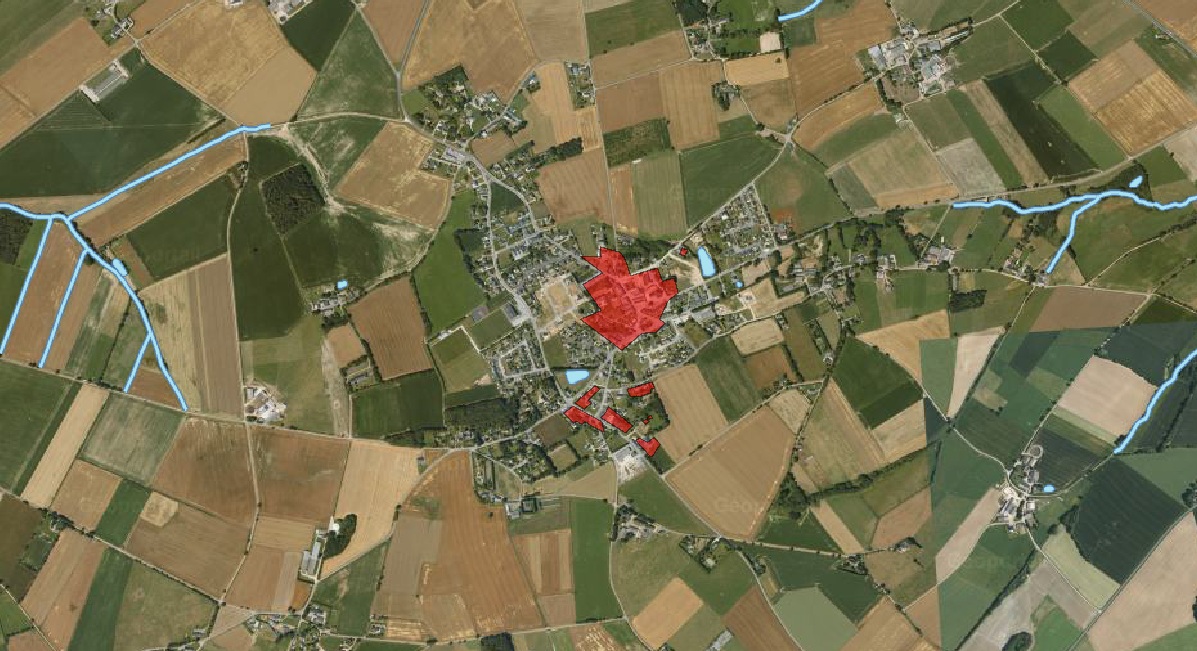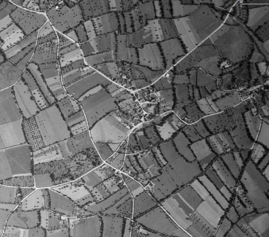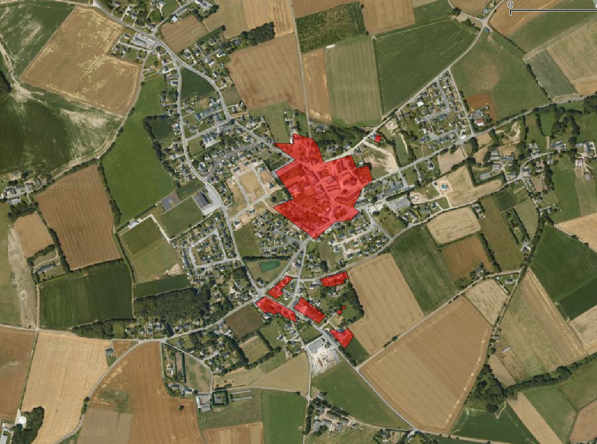 On observe un village compact de moins de 1000 habitants au cœur d'un bocage encore largement dominant.