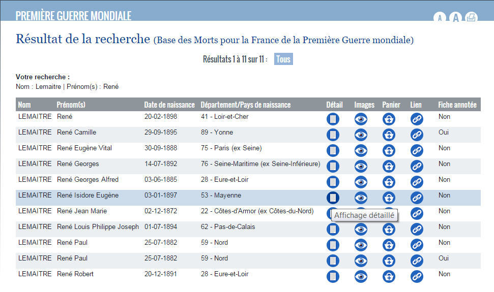 Première étape : obtenir la liste précise des morts pour la France de sa commune de résidence. Puis compléter un tableur en précisant les renseignements suivants : Lieu du décès, date, circonstances, identification du soldat, date de naissance.
