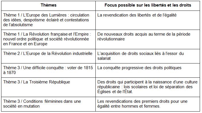 Le programme de 4ème en Histoire, en Enseignement moral et civique et ponctuellement en Géographie se prête à un fil rouge axé sur les droits et les libertés.