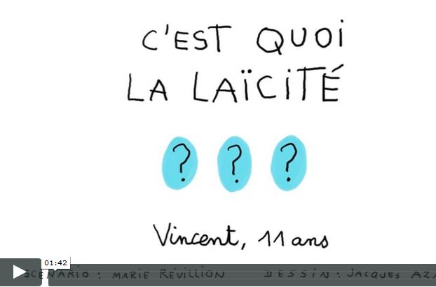 Visionnage d'une courte vidéo"c'est quoi la laïcité "- 1 jour, 1 actu et travail d'écriture dans le cahier : "pour moi la Charte de la laïcité à l'école permet..."