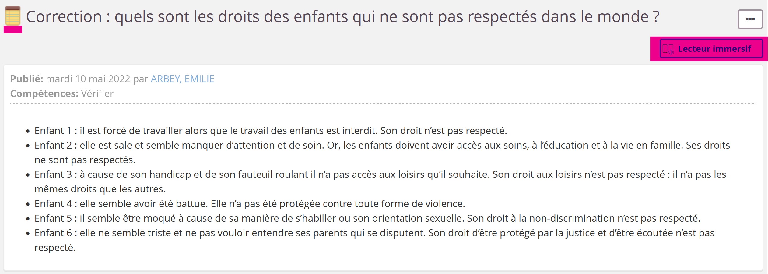 A partir de quelques ressources et d'exemples issus de l'actualité, les élèves réfléchissent aux solutions proposées pour garantir les droits des enfants. Ils peuvent également apporter leurs idées.