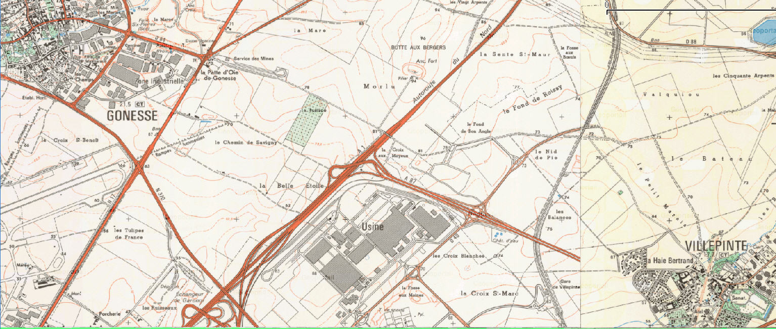 copie écran carte 1978 La carte du site en 1978, disponible sur édugéo, zone de Roissy. L'usine est alors à la pointe de la modernité avec une architecture qui fait l'unanimité. Dans un premier temps l'usine produit le haut de gamme de Citroën ( DS, CX). Puis à partir de 1976 et le rachat de Citroën par Peugeot, le site se spécialise dans les petits véhicules (104,AX , Saxo puis C2 et C3) L'abandon de la gamme C3 prévu pour 2014 semble signifier la fin de la production automobile sur ce site.