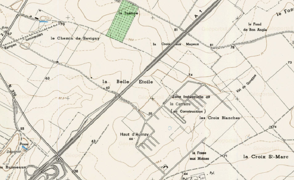 copie écran carte ancienne La carte du site en 1973 disponible sur édugéo, zone de Roissy.