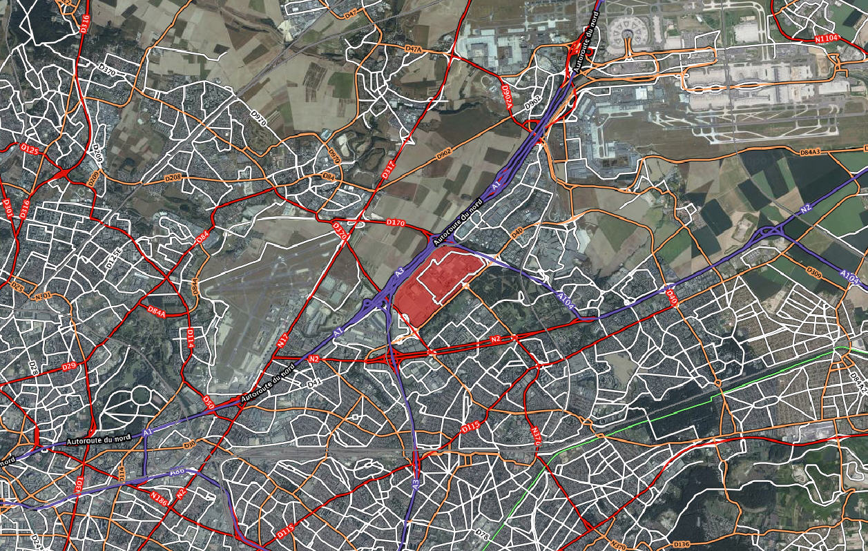 Parfaitement situé aux portes de Paris, reliée au réseau autoroutier et ferroviaire, l'emprise ( en marron sur la carte) peut sans doute être facilement changer de vocation pour devenir un pôle de services.
