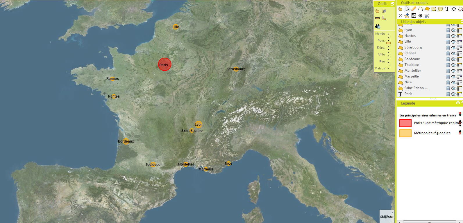 Utilisation du géoportail Situer et localiser précisément les principales aires urbaines