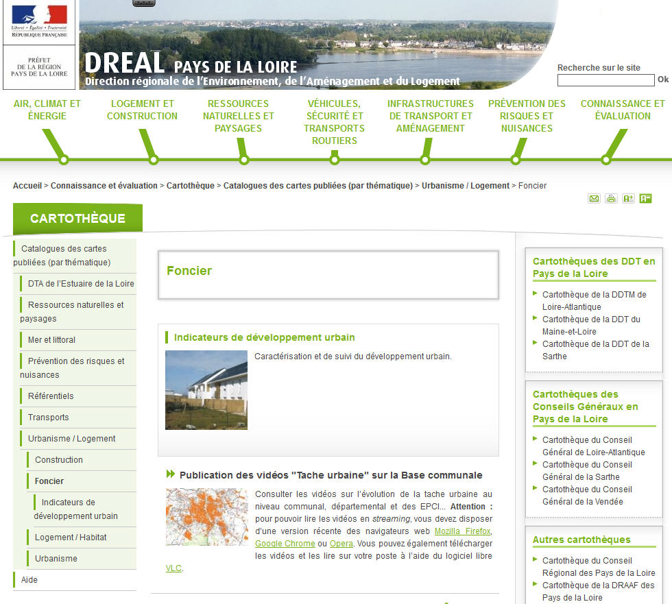 Le site de la DREAL qui propos des vidéos de l'évolution de la tâche urbaine du début du XXe siècle à aujourd'hui www.pays-de-la-loire.developpement-durable.gouv.fr