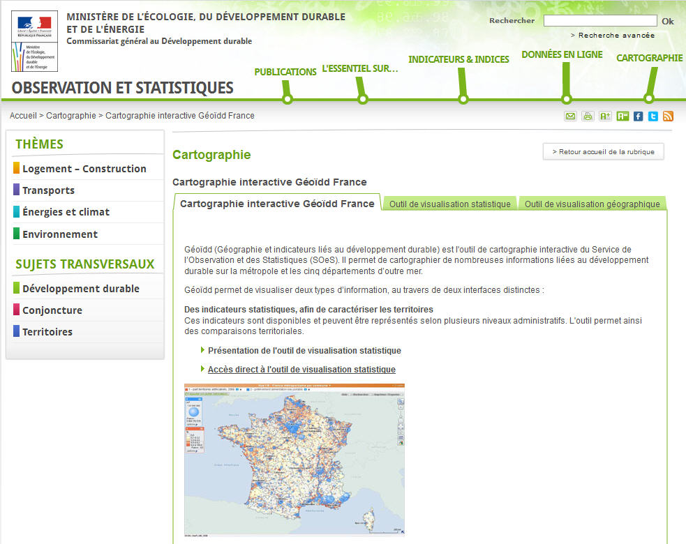 La cartographie dynamique du Geoïdd du Ministère de l'Écologie, du Développement Durable et de l'Énergie