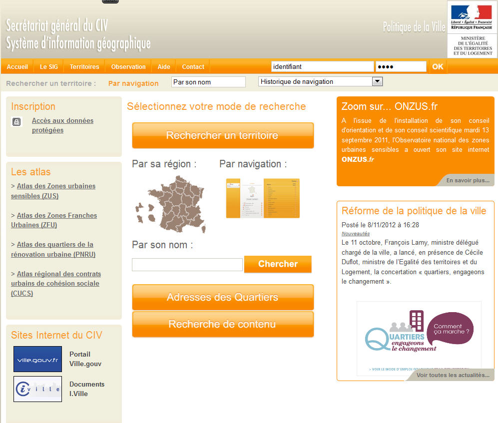 Le site internet du ministère de la ville