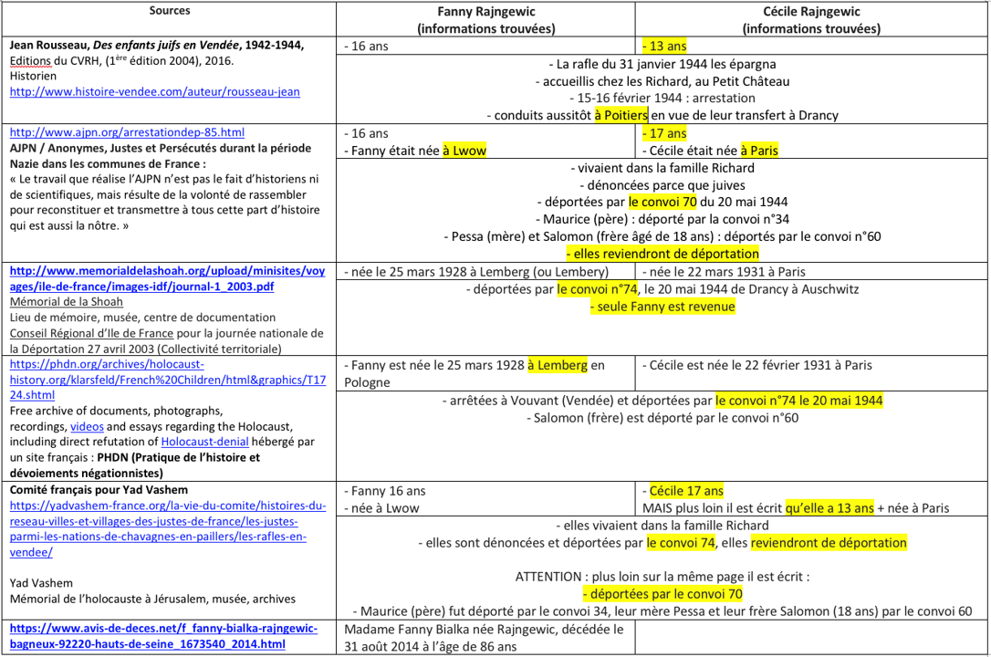 Point de départ, extrait du livre : Jean Rousseau, Des enfants juifs en Vendée, 1942-1944, Editions du CVRH, (1ère édition 2004), 2016 (pages 189-190).