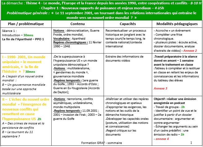 Proposition de traitement de deux PPO : - « Le 11 septembre 2001, un tournant dans les relations internationales qui entraîne le monde vers un nouvel ordre mondial ? » - « La fin de l'Apartheid en Afrique du Sud »