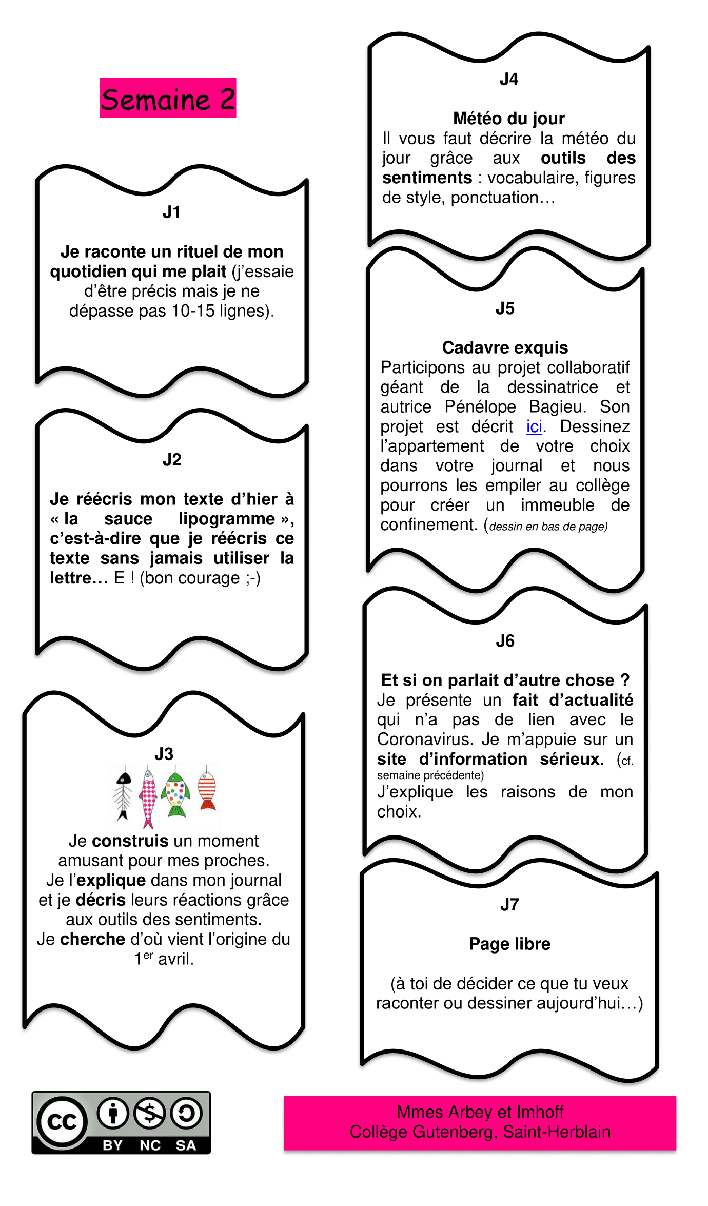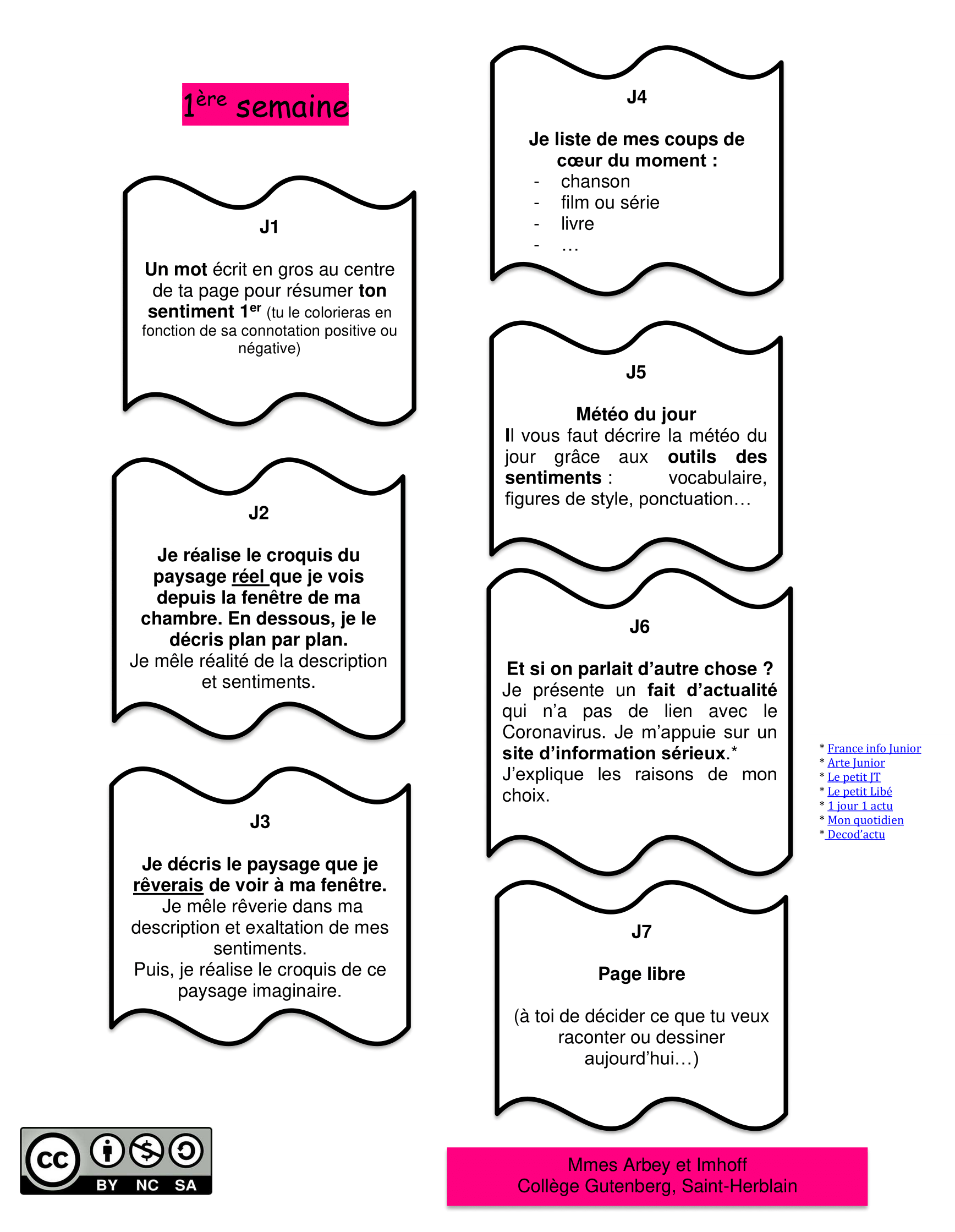 Les consignes sont envoyées aux élèves chaque semaine et mêlent les compétences déjà mises en jeu en Lettres, Histoire, Géographie et EMC.