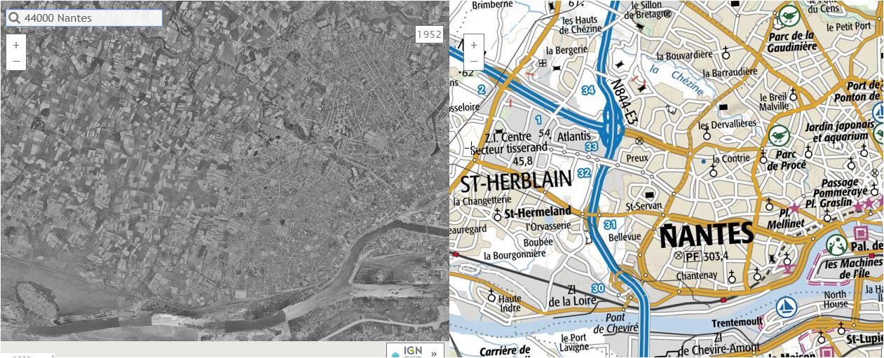 L'Institut National de l'Information Géographique (IGN) propose depuis 2016 un outil en ligne qui permet de comparer et mesurer l'évolution des territoires grâce à des cartes topographiques actuelles et historiques ainsi des des photographies aériennes actuelles et anciennes.