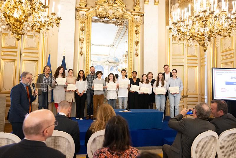 les lauréats du concours des jeunes ambassadeurs et ambassadrices 2023-2024 reçus au Quai d'Orsay