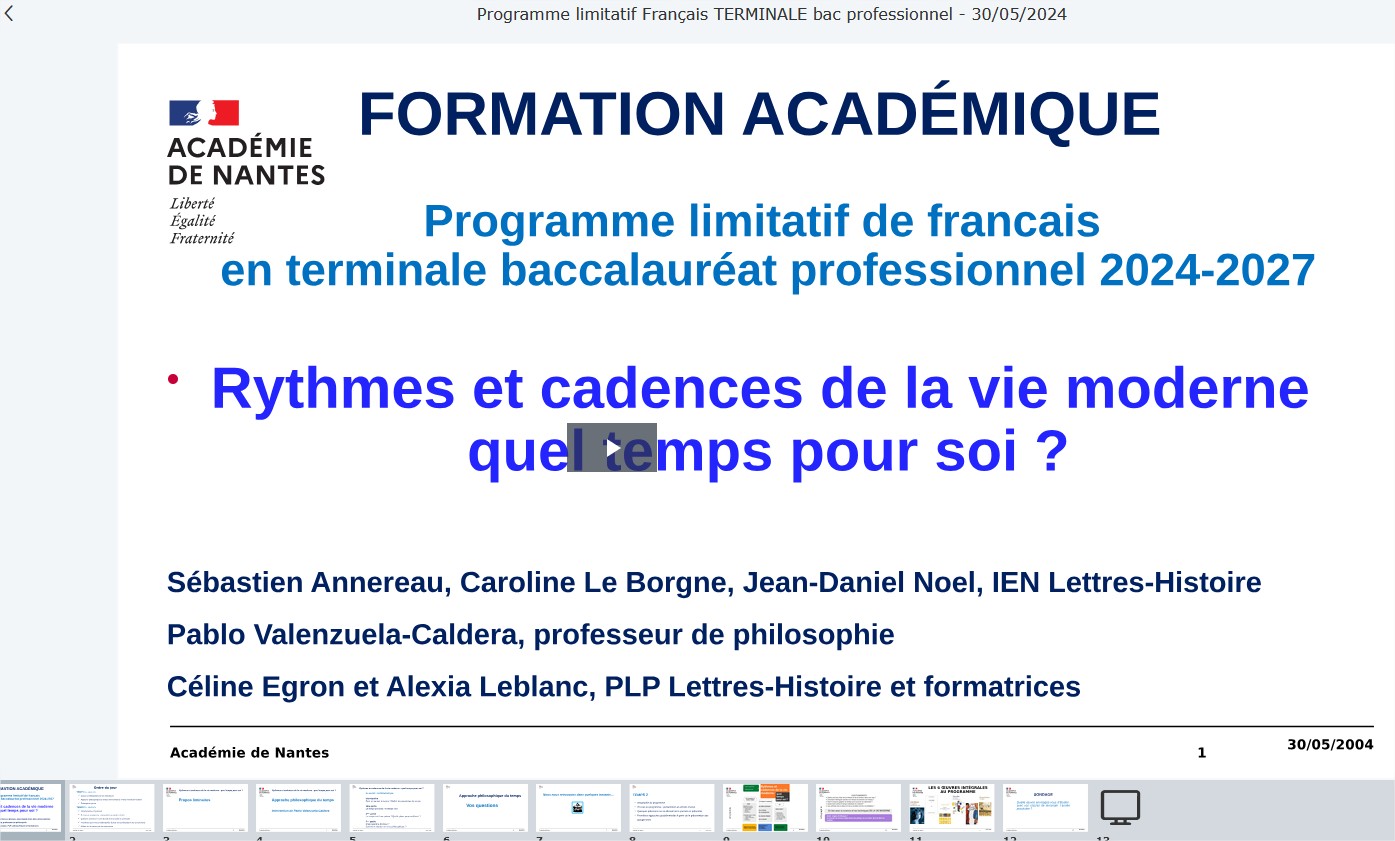 Captation du webinaire présentant le nouveau programme limitatif de Terminale Bac Pro