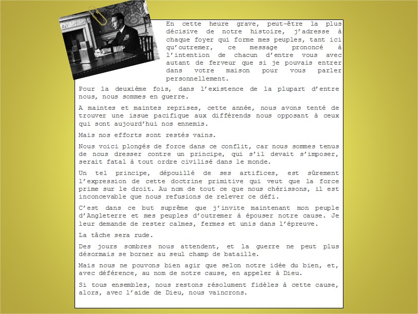 il s'agit d'un diaporama travaillé pour une séance sur Le discours d'un roi.