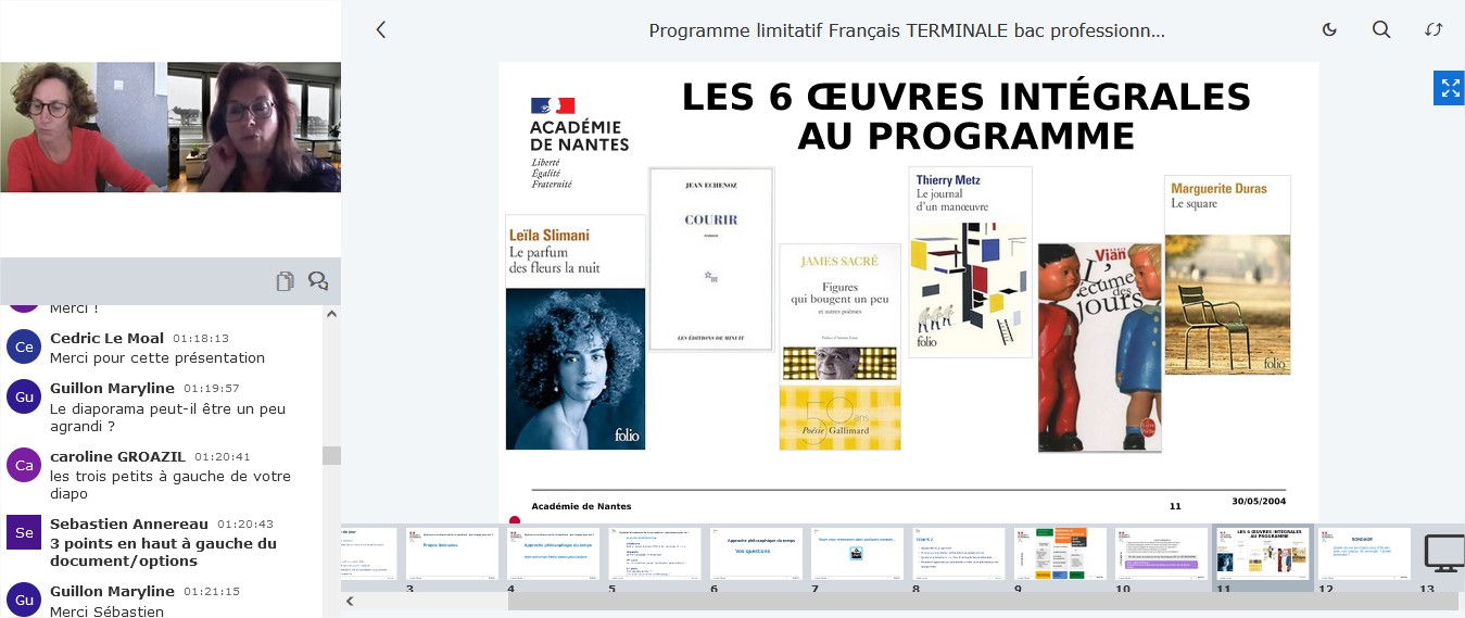 fiches sur les oeuvres du programme, extrait du webinaire du 30 mai