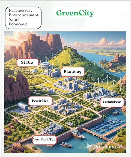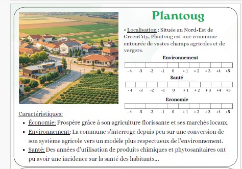 GreenCity est une communauté de communes fictive en pleine mutation. Face aux défis de société, la communauté de communes cherche à construire « la Ville de demain », afin de favoriser le développement économique de la communauté de communes, tout en prenant en compte les défis climatiques et environnementaux et la question de la santé.
