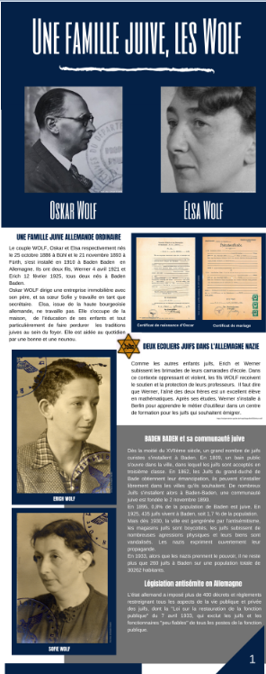 Nous avons ensuite longuement travaillé ensemble avec les élèves, traitant les documents, les contextualisant, les classant, les liant entre eux, choisissant les plus pertinents pour tenter de rendre compréhensible la funeste histoire de la famille WOLF.