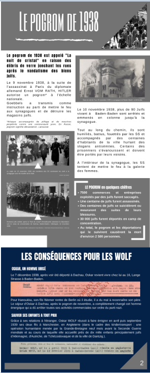 « La famille WOLF, une famille juive dans la tourmente de la seconde Guerre Mondiale » est une exposition réalisée par la classe des TPCOM2 du LPO les Bourdonnières à Nantes, encadrée par l'équipe pédagogique dans le cadre de l'Action Educative Ligérienne : « Histoire et mémoires : La Shoah »